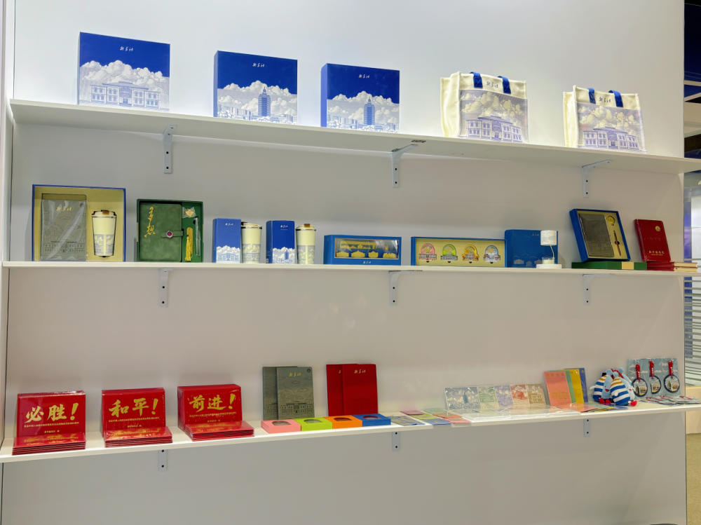展品以新华社文化元素为核心,涵盖九三阅兵、新华文化、铅笔楼等多个特色系列。此外,现场同步展出与“王者荣耀”“黑神话・悟空” 等热门游戏IP合作的联名礼盒,以及“宛平南路600号”“遇见上海” 等上海本地特色文旅IP衍生品。展位备受关注,吸引了众多参观者驻足了解、体验。
