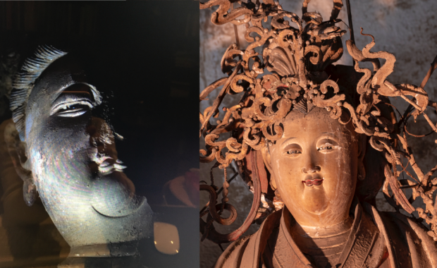 左图为南库房普贤菩萨头像 右图为鬼子母头像