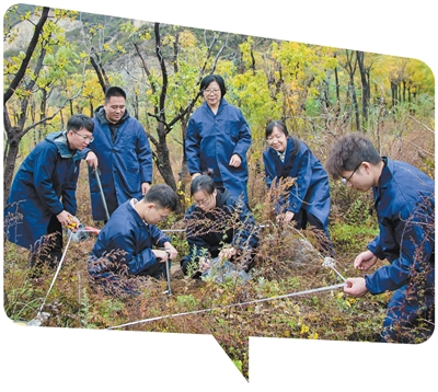 程芳琴(后排左三)带领团队开展样方调查研究。 山西大学供图