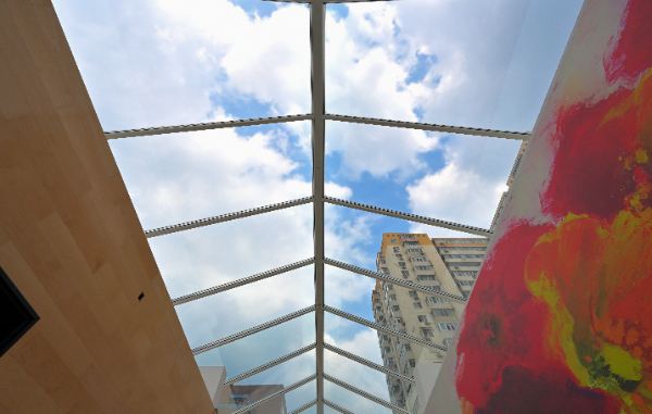 结合建筑实际情况选用三种高性能保温材料——石墨聚苯板、挤塑板和真空绝热板,用于包裹建筑的外墙、屋顶和地面,就像给建筑穿上一件“恒温羽绒服”。幕墙与天窗则创新性地采用大面积的由三块玻璃和两层空腔(在玻璃内填充惰性气体—氩气)构成的中空玻璃,不仅构筑了高效连贯的保温外壳,牢牢锁住室内温度,更是最大限度引入自然光线。为此,建筑还配备了防风卷帘、机翼板遮阳等多种遮阳设备,完美平衡四季不同需求,最终实现全年的高效节能与恒温舒适。