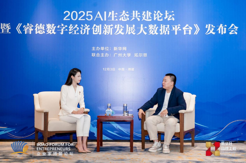 12月2日至5日,2025企业家博鳌论坛系列活动在海南博鳌举办。作为论坛系列活动之一,2025AI生态共建论坛暨《睿德数字经济创新发展大数据平台》发布会于3日在博鳌举行。论坛期间,中关村数智人工智能产业联盟(以下简称“联盟”)副理事长、秘书长贾昊在接受新华网记者采访时表示,本次论坛聚焦AI生态共建,通过“算力+硬件”双平台协同助力产业发展,推动AI技术从实验室加速走向千行百业,实现规模化应用与价值转化。