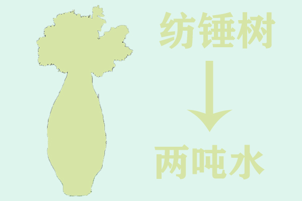 一般来说,一颗大纺锤树能贮藏大约2吨水,就像一个绿色的大“水塔”。纺锤树的储水功能可以支撑它度过漫长的夏季,并保存自己的生命,还在旱季给当地居民输送饮用水,所以非洲人非常喜爱纺锤树并大量种植,因为它是“神奇之树”、“救命之树”。