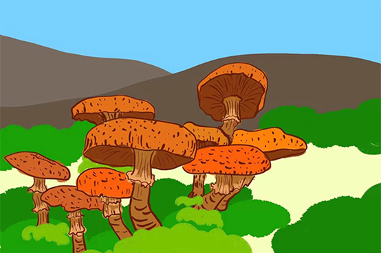蜜环菌又名蜜色环菌、蜜菌、榛蘑、栎菌等,是担子菌纲伞菌目伞菌科伞菌族蜜环菌属真菌植物蜜环蘑的子实体。世界上约有46种蜜环菌属真菌,在我国境内约有8种具有经济价值的蜜环菌,这种菌在很多阔叶树和针叶树的根部、树干基部、倒木及林中树上丛生,在东北地区被通称为榛蘑,产量很大,是很常见的食用菌。