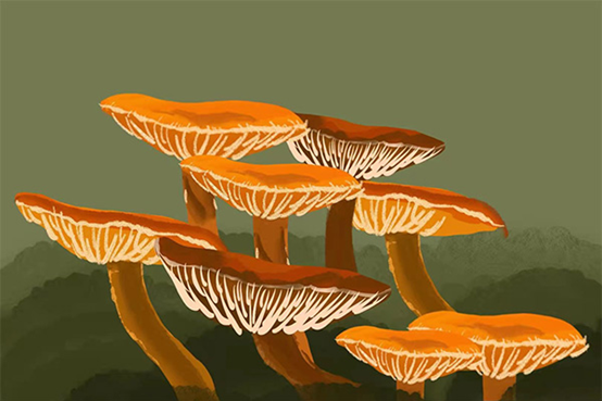 蜜环菌具有药用和食用两方面的价值。其子实体中的蛋白质和氨基酸含量非常丰富,尤其是谷氨酸和天门冬氨酸含量最高,对脑神经非常有益。蜜环菌富含人体所需的常量元素(Ca、K、Mg、P)和微量元素(Fe、Cr、Cu、Mg、B、Zn等)。除此之外,蜜环菌的子实体富含大量的维生素A、蜜环菌多糖、倍半萜类化合物、嘌呤类化合物等。蜜环菌多糖可以增强机体免疫功能;倍半萜类化合物不仅具有抗肿瘤、抗菌消炎、抗病毒、降血脂等生理活性,还具有免疫调节功效;嘌呤类化合物能够起到非常好的脑保护作用。在预防功效上,对视力失常、皮肤干燥、某些呼吸道和消化道干扰有很好的防治作用。