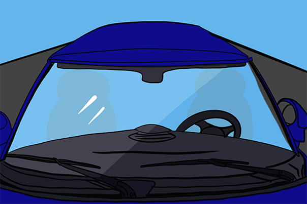 不过,汽车前窗玻璃倾斜安装的更重要原因,却是为了保证行车的安全。当晚上乘坐在公共汽车上,透过竖直安装的侧向玻璃窗向外观望时,如果车内比较明亮,车里面的景物就会在玻璃上形成清晰的虚像,这个虚像会和窗外的景物重叠在一起,使人产生难辨内外的幻觉。这时的玻璃窗就像是一面透明的镜子。如果汽车的前窗玻璃也是竖直安装的,车内景物的虚像就会反映到前窗玻璃上,和车外景物的影像重叠混杂在一起,给观察道路和车流、行人情况的司机造成视觉上的困惑,极容易导致交通事故的发生。所以夜晚开车尽量不要打开车内的灯。
