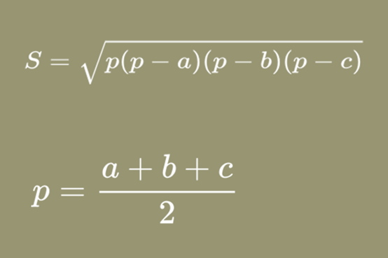 这里,“△”指三角形的面积,a、b、c是三角形各边长。海伦对这个公式做出了证明,所以后人称这个公式为海伦公式。