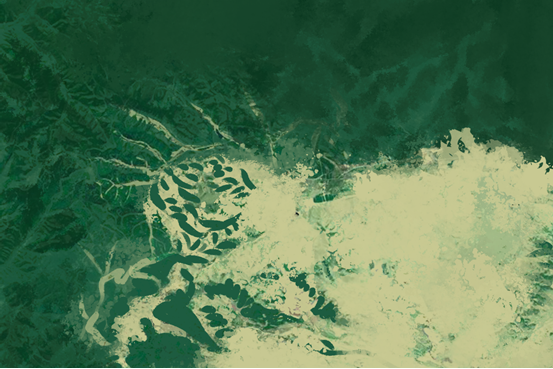 而当这团湿润的空间越过山顶,来到背风坡时,它已经是被“拧干水分的毛巾”,降雨相应减少。因此就形成了西侧茂密植被到东侧高原沙漠的转变。