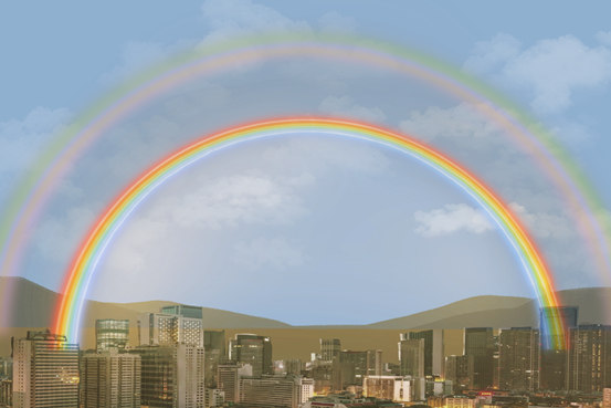 那么,想看到迷人的双彩虹现象,需要满足哪些条件呢?首先要符合彩虹形成的基本条件,即充足的水汽和丰沛的太阳光。当这些条件符合后,空气里的水滴大小决定了彩虹的色彩鲜艳程度。空气中的水滴大,彩虹就鲜艳;水滴小,彩虹颜色就黯淡。因此,想要看见双彩虹,还需要依靠空气中的大雨滴。
