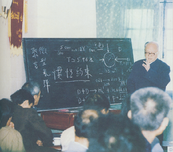 王淦昌一向强调“科学研究是硬碰硬的事情”,对于那些虚假的或者似是而非的东西,要做到准确鉴别、坚决摒弃。20世纪50年代初期,对于苏联科学家宣称发现的十多个新粒子(即所谓“变子”),他明确表示反对,而最终也证明他的判断是准确的。图为1980年王淦昌在原子能研究所作报告。