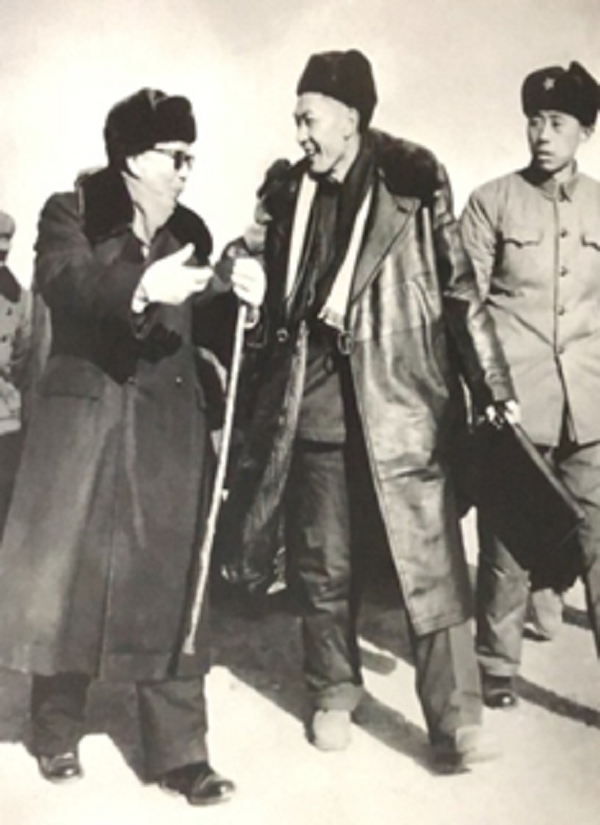 尽管隐姓埋名、身处边疆,但为中国两弹一星事业奋斗的科学家们却有着天高地阔、大有可为的壮志豪情,展现出意气风发、乐观向上的精神风貌。图为1966年12月,朱光亚(中)和聂荣臻在核试验基地。