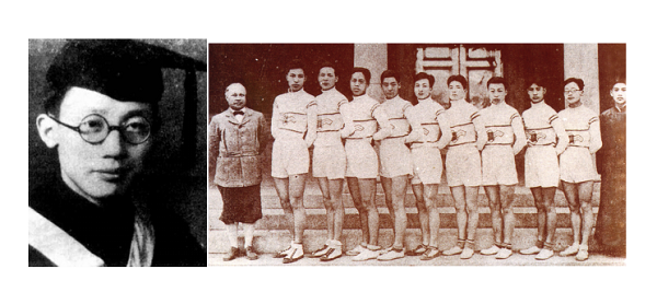 钱伟长在清华学习时,在认真学习的同时坚持锻炼身体,以便今后更好地开展工作。左图为年轻时的钱伟长;右图为1935年清华大学越野校队在校体育馆前合影,右二为钱伟长。