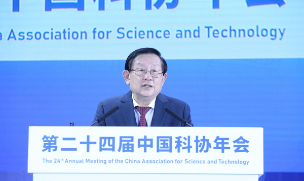 万钢在第二十四届中国科协年会开幕式上致辞(中国科协供图)