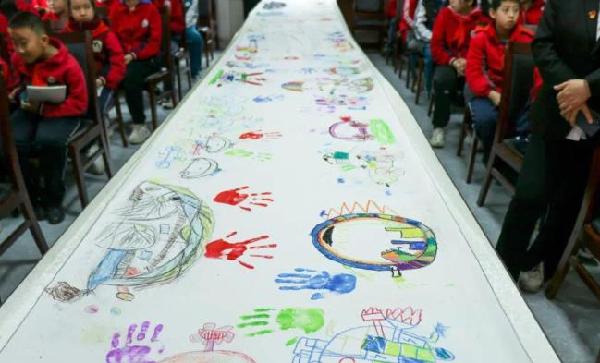 汽车知名设计师黄将展示了几种不同车型的画法,在生动的教学中传递“胸有成竹、落笔无悔”的哲理,四十余名小朋友一同在长长的卷幅式画纸上作画。黄老师鼓励青少年打破常规,不要被现在的汽车造型所限制,发挥无限想象力,用手中的画笔将最好的创意呈现出来,描绘出自己心目中的交通工具,并用彩色颜料在画作上留下自己的掌印。