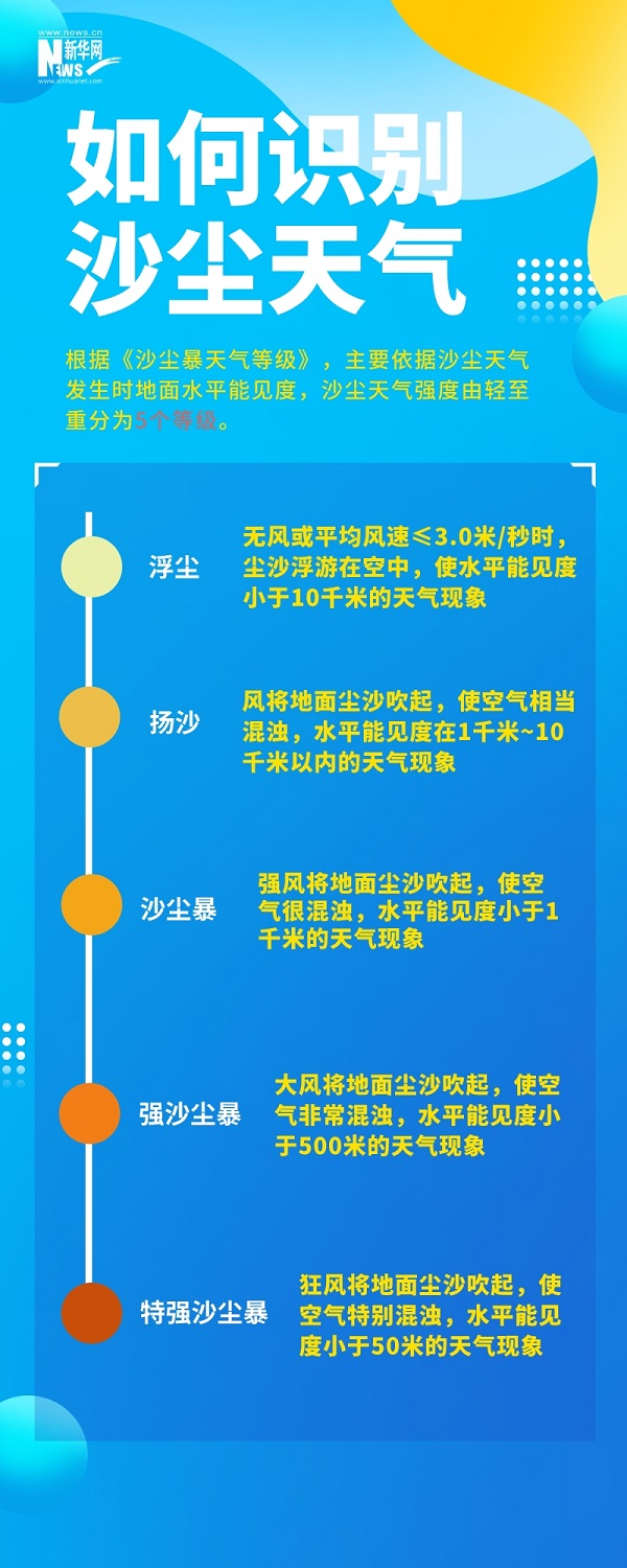 沙尘天气是指风将地面尘土、沙粒卷入空中,使空气混浊的天气现象。根据《沙尘暴天气等级》,主要依据沙尘天气发生时地面水平能见度,沙尘天气强度由轻至重分为5个等级。