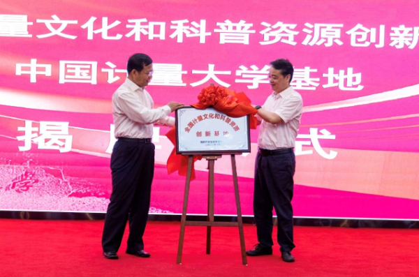 国家市场监管总局计量司副司长杜跃军和中国计量大学校长徐江荣共同为全国计量文化和科普资源创新基地中国计量大学基地揭牌。