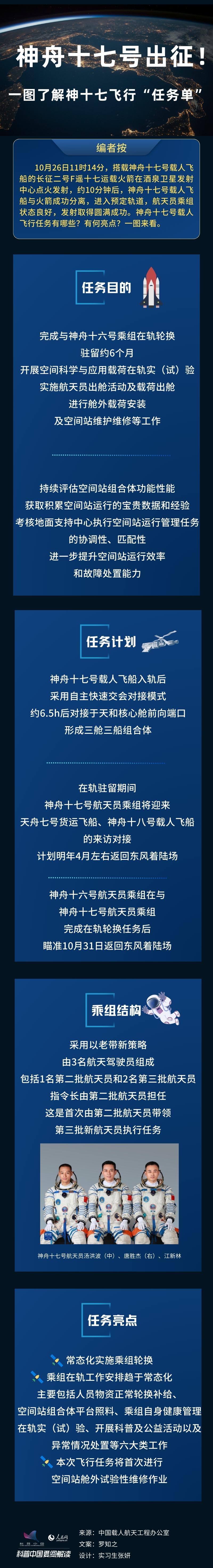 科普图解 | 发射圆满成功!一图了解神十七飞行“任务单”