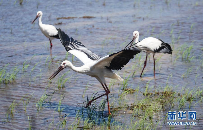 东方白鹳对生态环境的要求比较苛刻。它们一般选择人为干扰少、生态环境优越、食物丰富的地带栖身。为解决东方白鹳生存与繁衍面临的问题,近年来,我国许多保护区通过设立众多人工巢、植树造林、杜绝盗猎、退渔还湿,特别是在长江、黄河等流域采取的禁渔措施,都有效改善了东方白鹳种群生存环境,护佑了鸟类生存的空间,守卫人与自然和谐共处的环境。