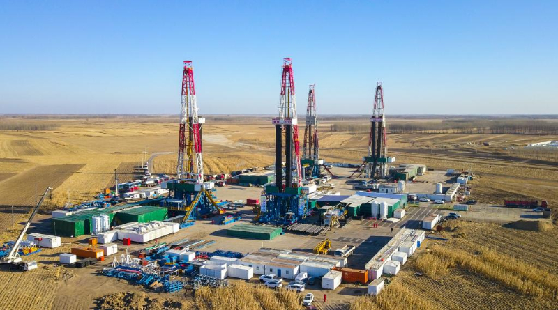 资料图片:2020年拍摄的大庆油田古页油平1试验区钻井现场