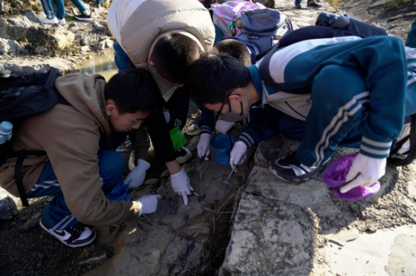 在贵州省地质博物馆的化石修复室,同学们亲眼见证了化石修复的过程,并在专业修复师的指导下,他们亲手打磨和清理“三叶虫”化石,践习古生物学家的工作日常。