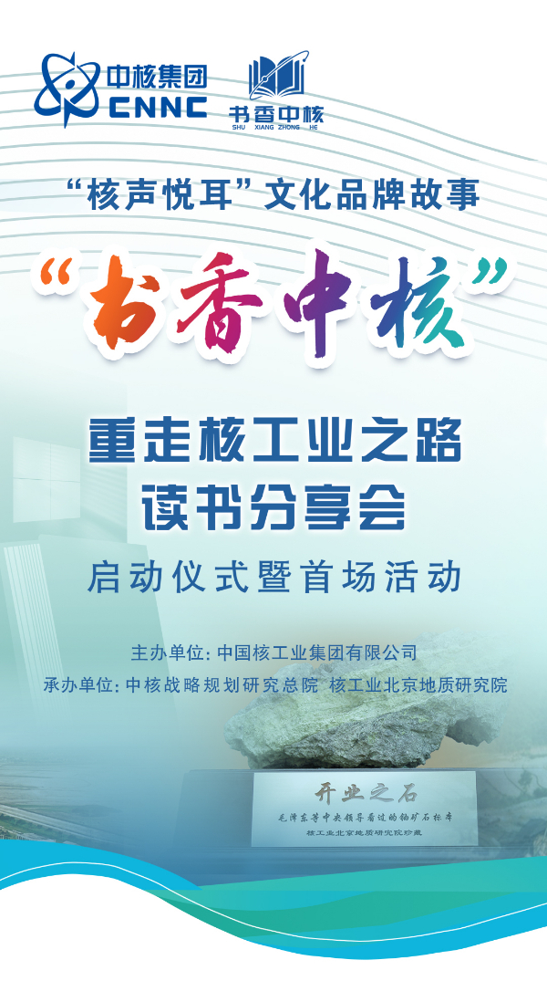 为建设书香中核、学习型中核,大力弘扬两弹一星精神及核工业精神,以迎接庆祝我国第一颗原子弹爆炸60周年、迎接我国核工业创建70周年、重温核工业历史、歌颂新时代新成就为主题,以全民阅读日为契机,于2024年4月23日上午9:00,以线下活动+线上直播的形式举办“书香中核”重走核工业之路读书分享会启动仪式暨首场活动。敬请关注!