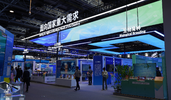 图为4月25日拍摄的中关村论坛中关村国际创新中心的展览现场。