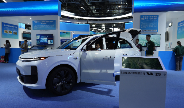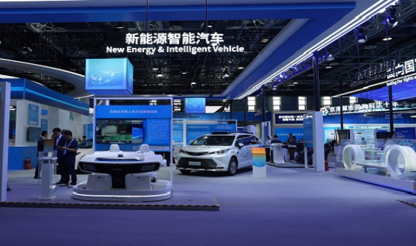 图为4月25日拍摄的在中关村国际创新中心展览的新能源汽车项目。