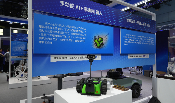 图为4月25日拍摄的在中关村国际创新中心参展的多用途机器人项目。