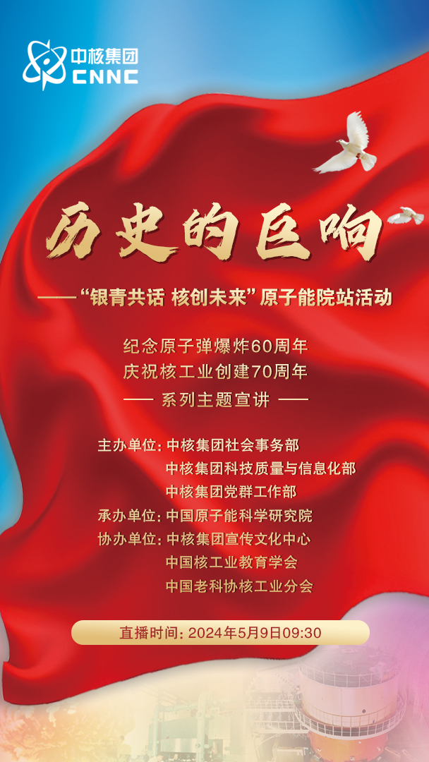 我国第一颗原子弹爆炸的艰辛历程,展现了老一辈核工业人在科技发展的道路上的不畏艰难与勇攀高峰的精神。《“历史的巨响”——“银青共话 核创未来”原子能院站》将于2024年5月9日(星期四)9时30分在中核集团官方平台微信视频号、微博、抖音、快手、百家号、B站,新华网客户端同步直播,期待与您共同缅怀历史,铭记先烈,传承红色基因,共同书写中核事业的辉煌未来!
