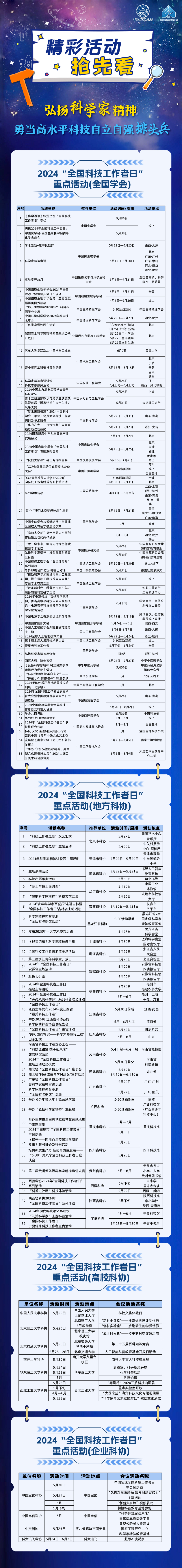 以下公布首批活动节目单,展示部分全国学会、省级科协和基层组织(高校科协、企业科协)的重点活动。快来看看吧!