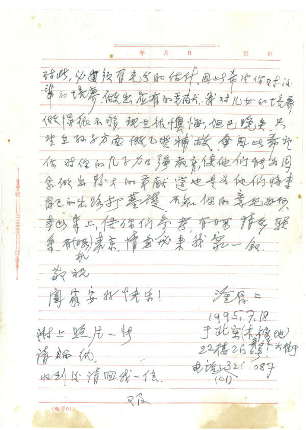 【家书背景】这封信是当时已88岁高龄的王淦昌写给自己警卫员任银乐的信。王老不仅关心警卫员生活状况,更关心其后代的学习情况,并建议“第三代必定要读书,读得愈多愈好,若能读大学最好,至少要读高中或读职业学校。因为世界在进步,将来若读书读得太少,必定要吃亏。
