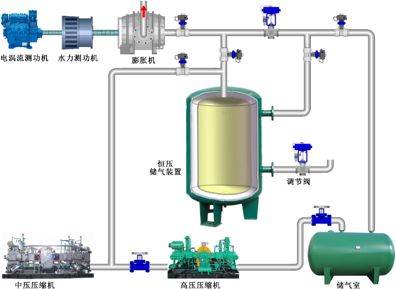 恒压压缩空气储能试验平台示意图 (图片来源:中国科学院工程热物理研究所)