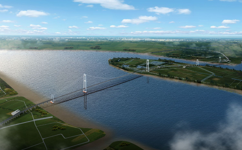 张靖皋长江大桥建成效果示意图。中铁大桥局供图
