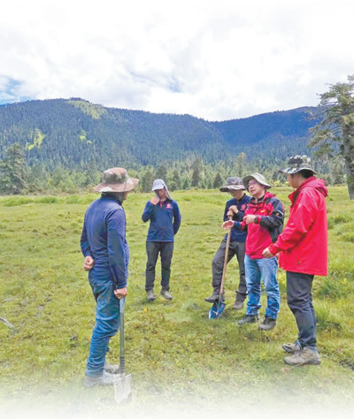 张甘霖(右二)在野外考察。 杨 飞摄(人民视觉)