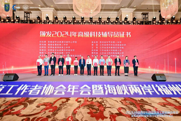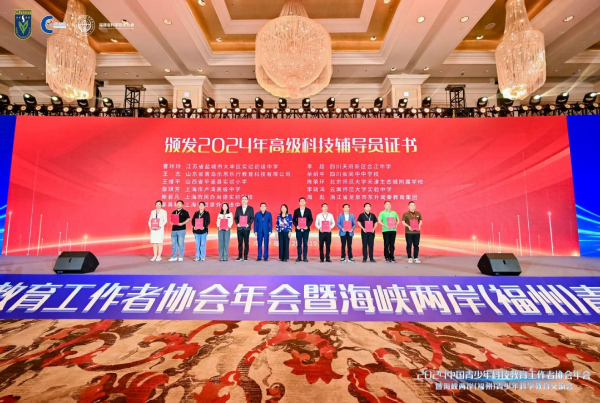 开幕式上为23位获得2024年高级科技辅导员专业水平认证的教师颁发证书。