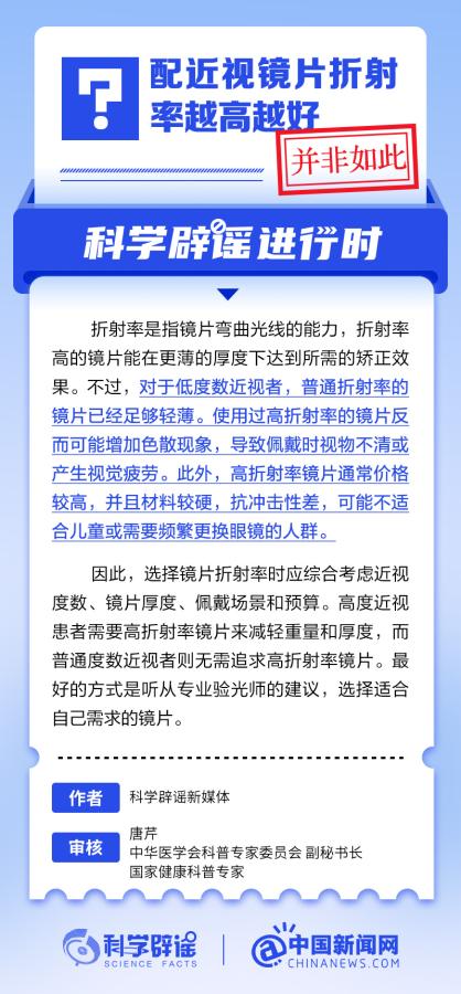 折射率是指镜片弯曲光线的能力,折射率高的镜片能在更薄的厚度下达到所需的矫正效果。不过,对于低度数近视者,普通折射率的镜片已经足够轻薄。使用过高折射率的镜片反而可能增加色散现象,导致佩戴时视物不清或产生视觉疲劳。
