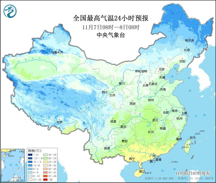 立冬日全国最高气温预报(图片来源:中央气象台)