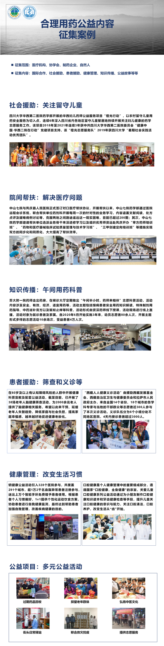 助力中国健康事业的建设,需要全社会共同的努力。本次征集活动期待您的积极参与,共同为合理用药公益事业贡献力量!
