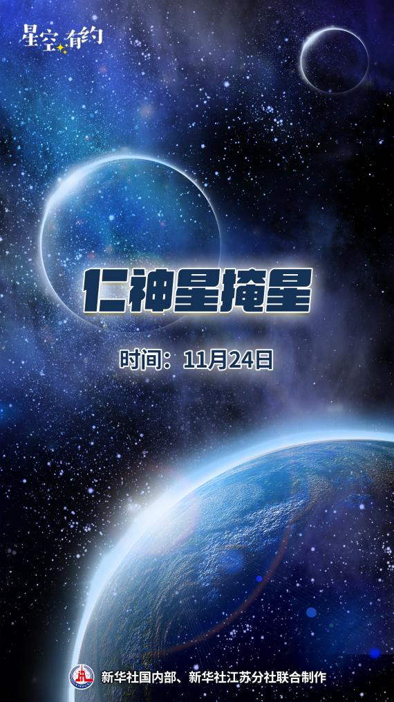 11月24日将上演仁神星掩星。仁神星是人类发现的第47颗小行星,此次它将掩食御夫座中的一颗恒星。本次掩食带自东向西经过我国南方部分地区,掩食带中的天文爱好者可以尝试通过专业望远镜观测御夫座中的一颗恒星被另外一颗移动的稍暗“星星”遮住,变暗或“消失”十多秒钟。