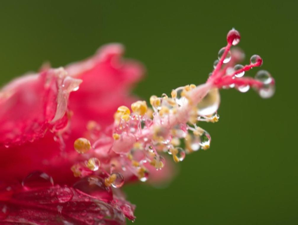 2016年雨水时节,海南春雨绵绵,一朵牵牛花上挂满晶莹的雨珠。(图片来源:新华社)