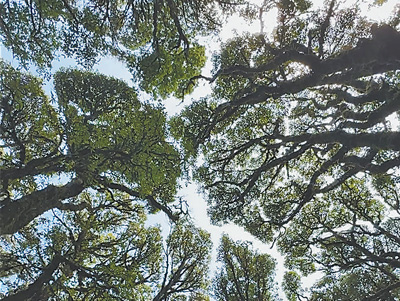 在云南哀牢山的森林里,生存空间再拥挤,相邻树木的树冠也不会相互遮挡,尽量保持距离。这种现象被称作“树冠羞避”,常见于热带、亚热带阔叶林。