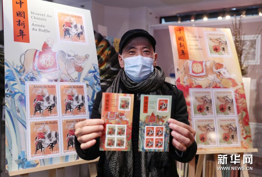 新华社巴黎2月6日电(记者胡雪)为迎接中国农历新年,法国邮政公司6日在巴黎举行牛年生肖纪念邮票发行仪式。