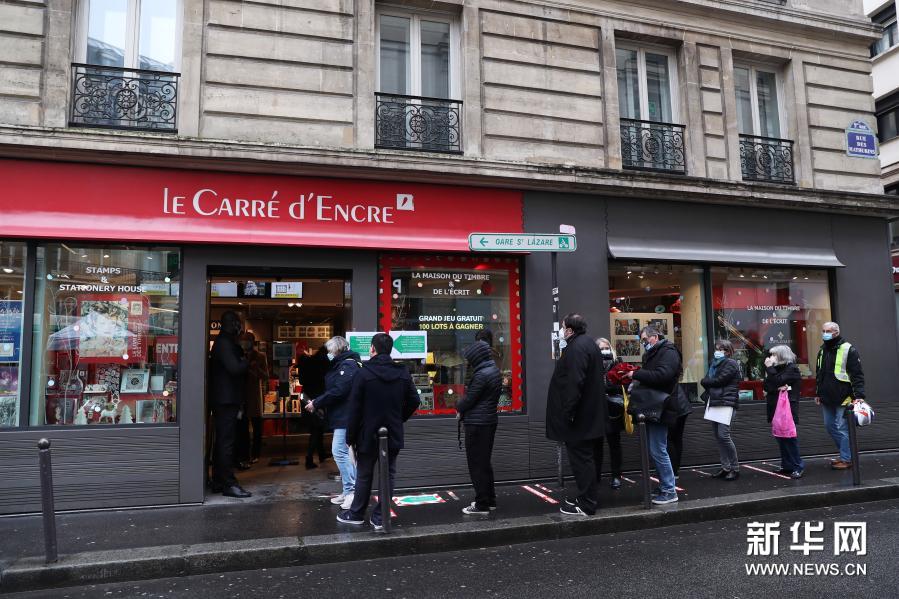 2月6日,集邮爱好者在法国巴黎牛年生肖邮票发行仪式现场外排队等待。新华社记者 高静 摄