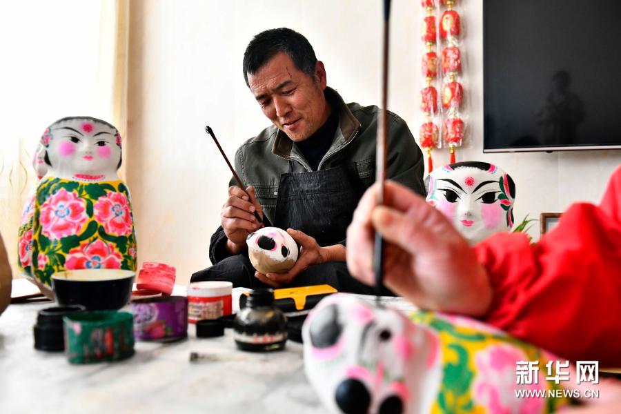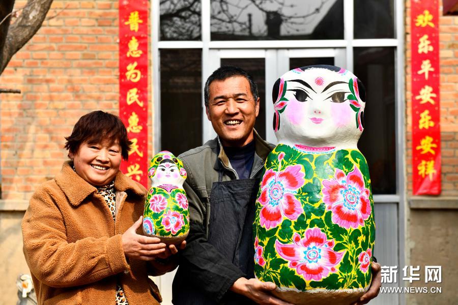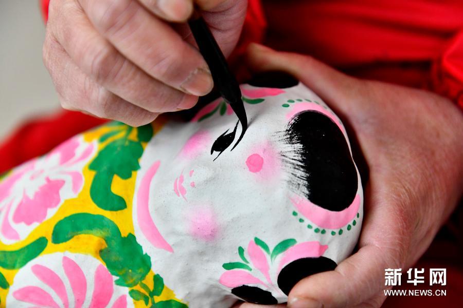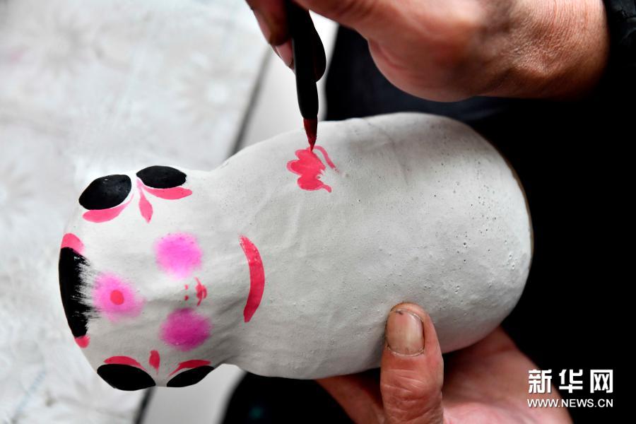 国家级非物质文化遗产“惠民泥塑”兴起于明朝,至今已有五百多年的历史。惠民泥塑以红粘泥为原料,品种有单面娃、双面娃、三面葫芦娃等不倒翁造型类“泥娃娃”,色彩鲜艳,造型喜庆。新华社记者 郭绪雷 摄