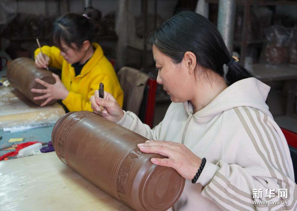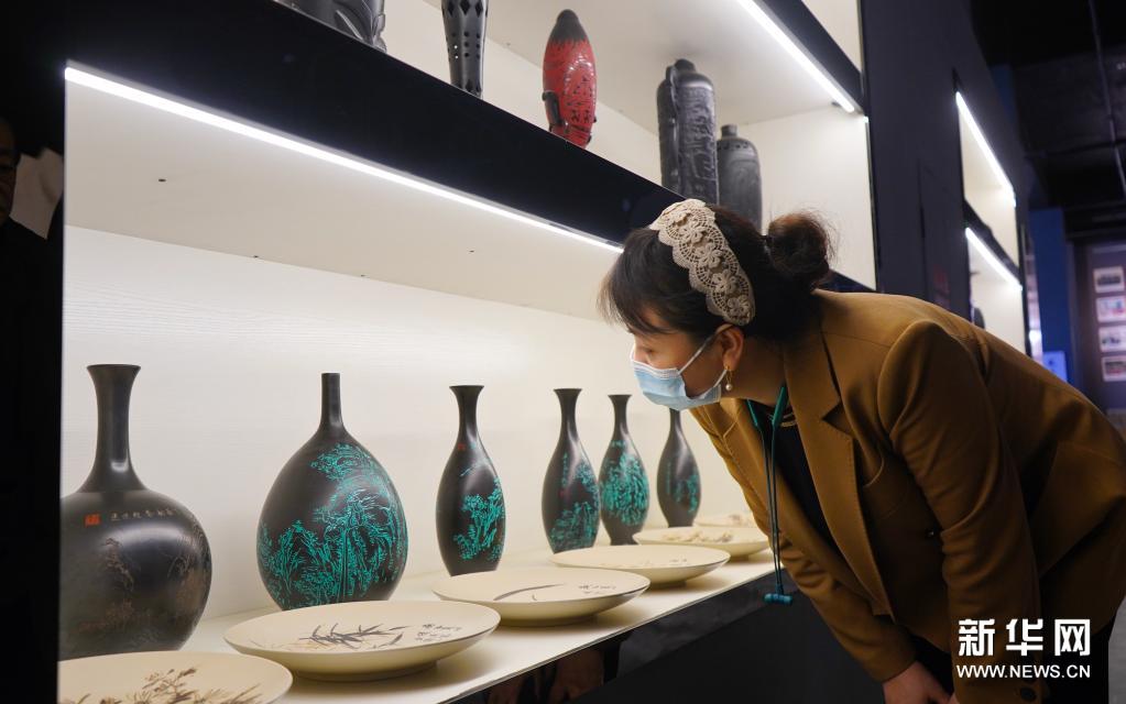 近年来,河北省邯郸市馆陶县坚持聚集发展、因地制宜、市场导向原则,着力打造特色黑陶文化产业集群,推动黑陶生产、加工及营销为一体的产业链发展。经发展,馆陶黑陶等陶艺生产技法逐渐多样化,产出了镂空、浮雕、线刻、影雕、彩绘、漆画、镶嵌等系列的产品。新华社记者 金皓原 摄