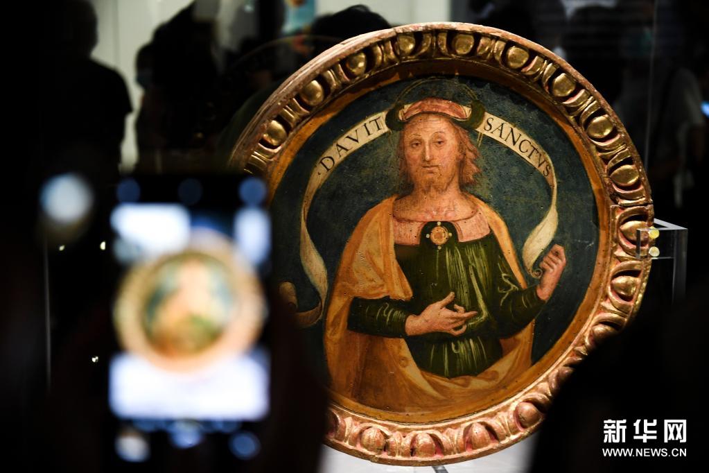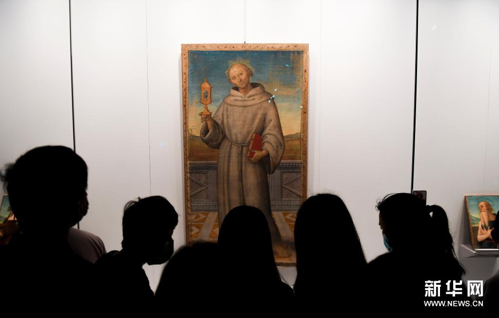 5月3日,观众在欣赏彼得罗·万努奇(又称佩鲁吉诺)的作品《真福的贾科莫·德拉·马卡》。新华社记者 毛思倩 摄