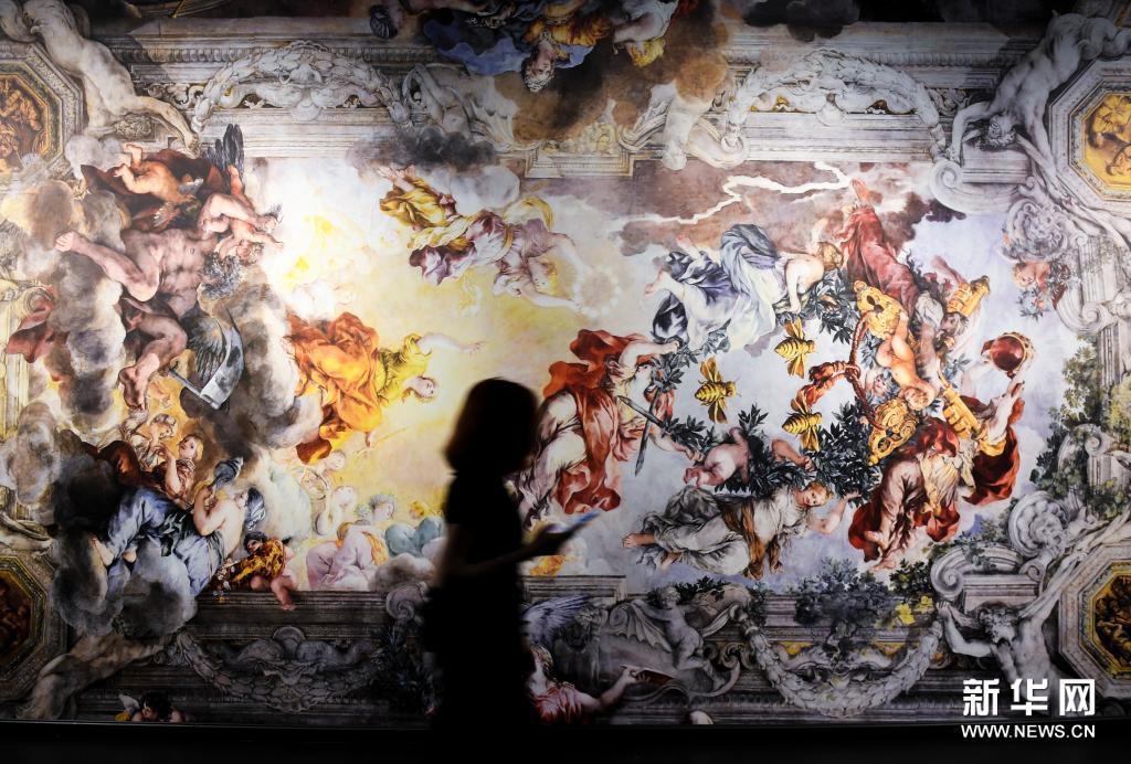 5月3日,观众走过展出的彼得罗·达·科尔托纳壁画作品《神意的胜利》复制品。新华社记者 毛思倩 摄