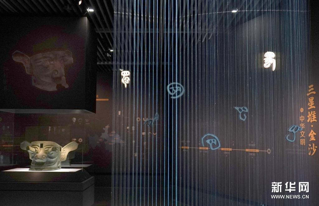 6月7日拍摄的奉贤博物馆“古蜀之光”三星堆·金沙遗址出土文物大展展厅入口。新华社记者 任珑 摄