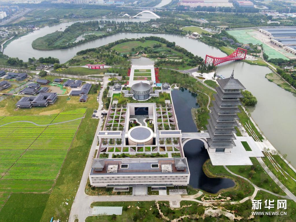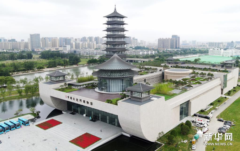 这是6月16日拍摄的扬州中国大运河博物馆外景(无人机照片)。新华社发(孟德龙 摄)