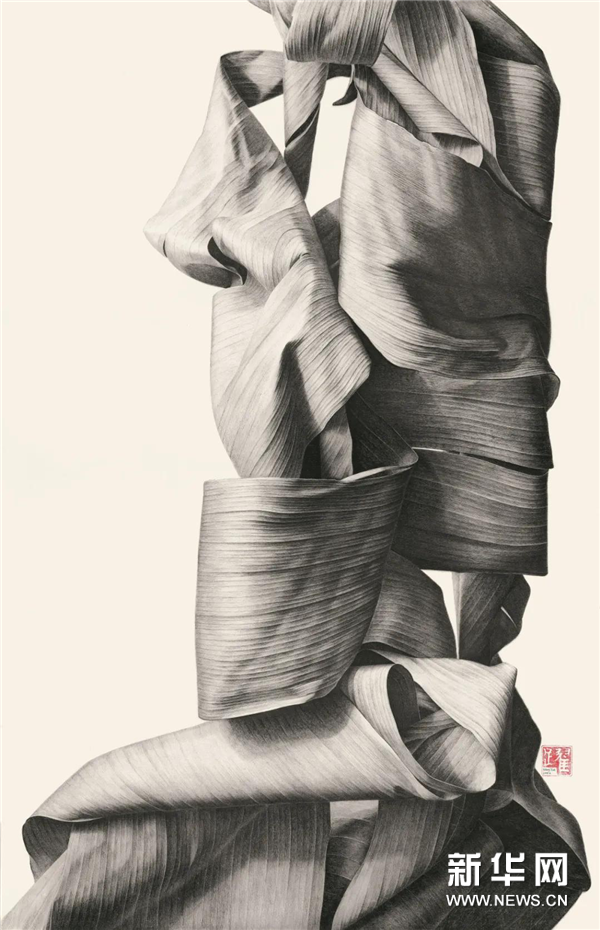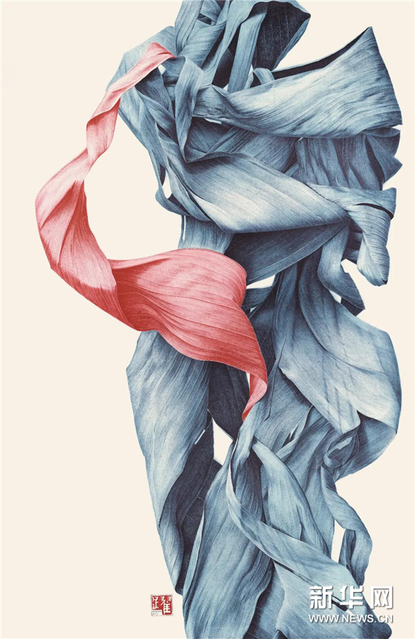 王跃的新道之境,是顺应自身的生命之道。从激流中回到河床,最大限度亲近土地,用钢珠笔与地涌金莲这种生生不息的地之精灵交换信息,缓缓用线,自给自足而日益充盈。钢珠笔绘画,要保持线条画面的流畅与连贯,需要长时间保持极高的专注度。从植物到人性,从地涌金莲的韧到他的韧,探索人性的复杂与执拗,对人的植物性思考向前迈出了画家独特又不可或缺的一步。