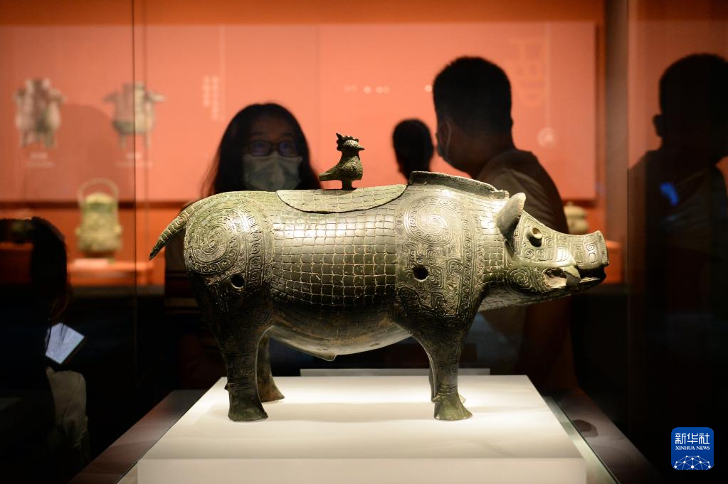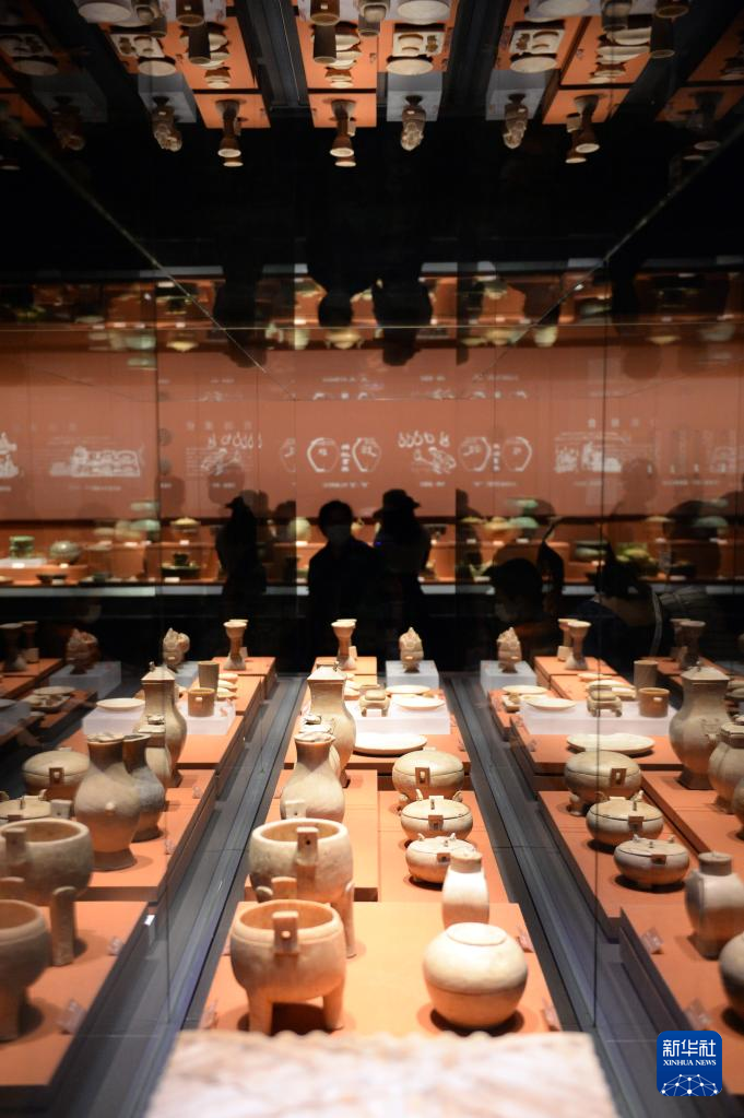 2021年10月3日,游客在湖南省博物馆参观。 当日是国庆假期第三天,各地的人们通过丰富多彩的形式享受假期欢乐时光。 新华社记者 陈振海 摄